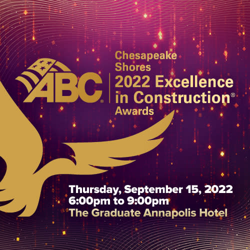Join us as we celebrate the very best in the construction industry!Our annual Excellence in Construction (EIC) Awards honors and celebrates outstanding projects completed by ABC Chesapeake Shores' members. The competition serves to raise the level of construction standards throughout the industry by recognizing the workmanship of those who contribute and by showcasing the results of their dedication. We’ll also be honoring all 2022 Safety Award winners—including STEP and Chapter Safety. Find out more about these programs by emailing mcalhan@abc-chesapeake.org.Award winning companies are encouraged to invite their entire project team including architects, engineers, owners and developers to this program!